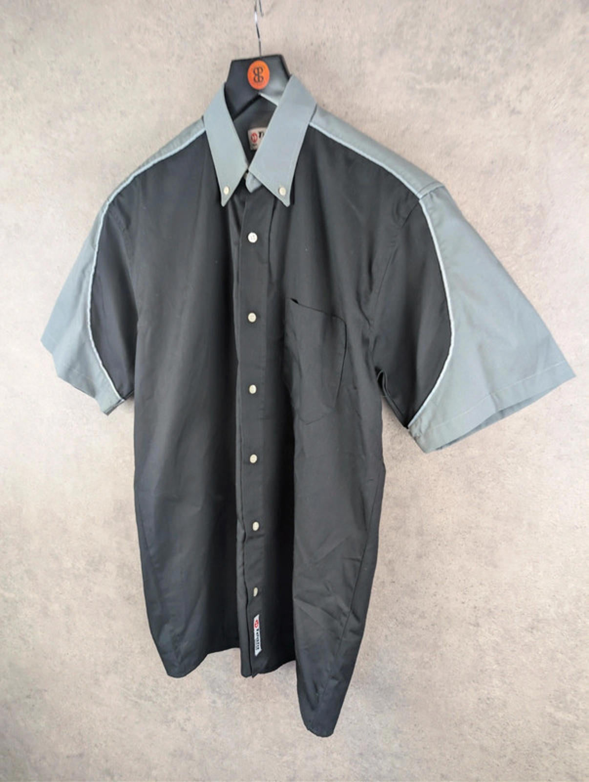 Team Wear Shirt Mens M Medium Grey Y2K Short Sleeve Work Wear