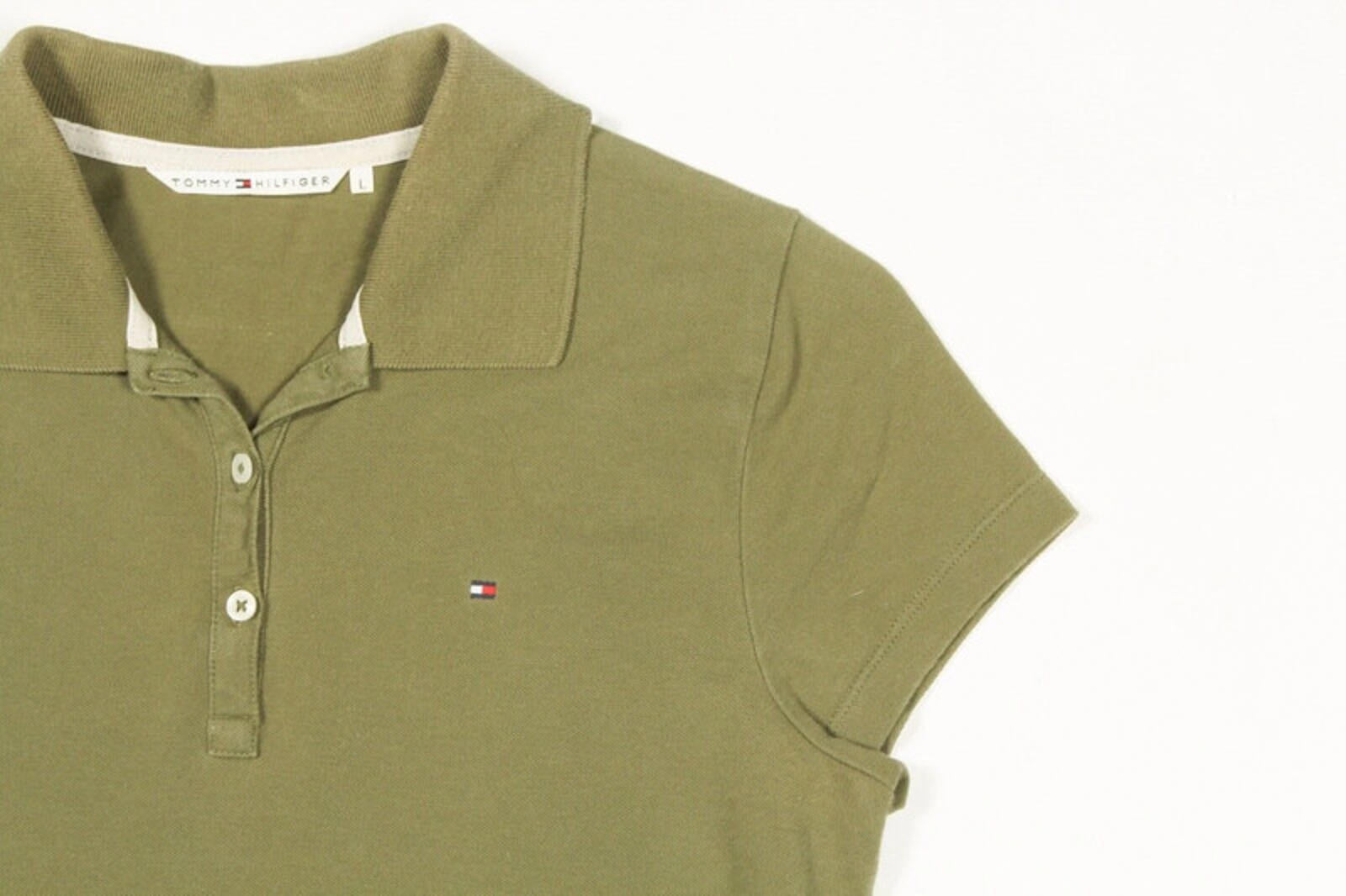 Decrease quantity for Tommy Hilfiger Polo Shirt Womens Medium m Khaki Short Sleeve