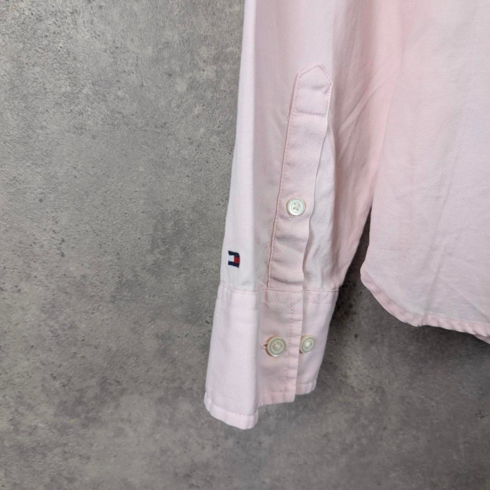 Clean and classic Tommy Hilfiger women’s long sleeve shirt in a soft pastel pink colour. Features a button-up front, structured collar, and a flattering tailored fit, making it perfect for both smart and casual wear.