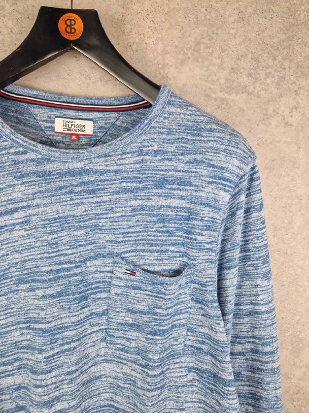 Tommy Hilfiger T Shirt Mens Extra Large Blue Long Sleeve Crew Neck Casual Chest Pocket