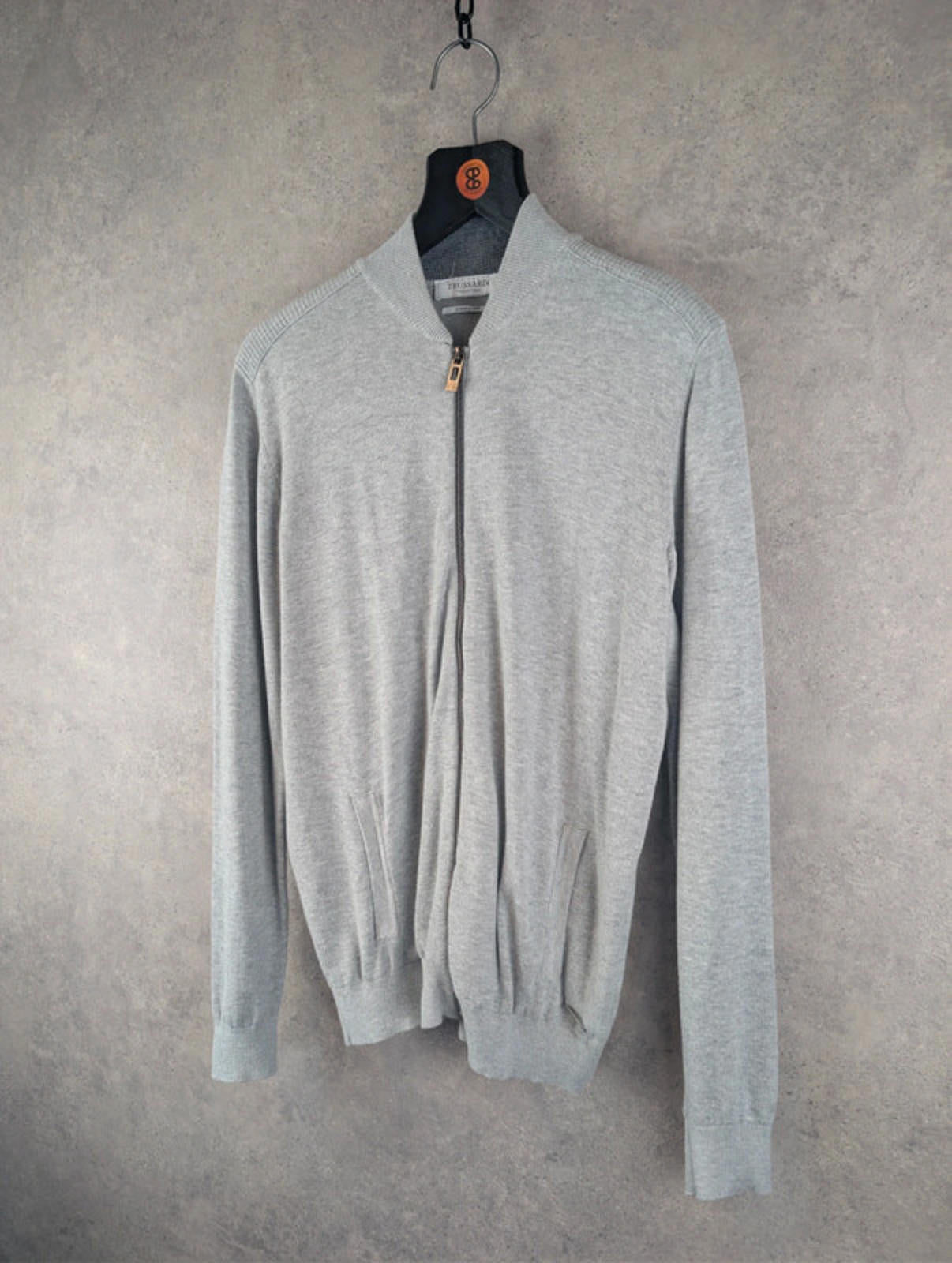 Decrease quantity for Trussardi Jumper Mens S Small Grey Knitted Full Zip