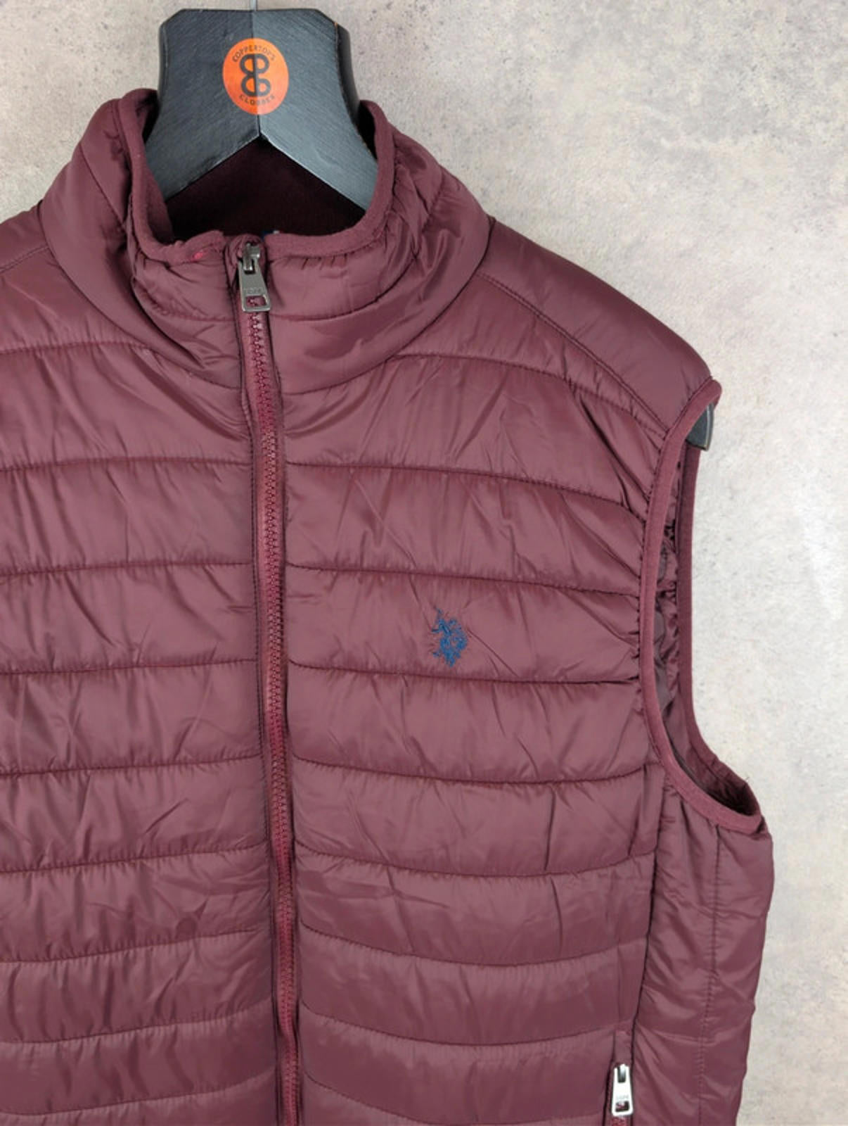 U.S Polo Assn. Jacket Mens L Large Burgundy Gilet Padded Body Warmer
