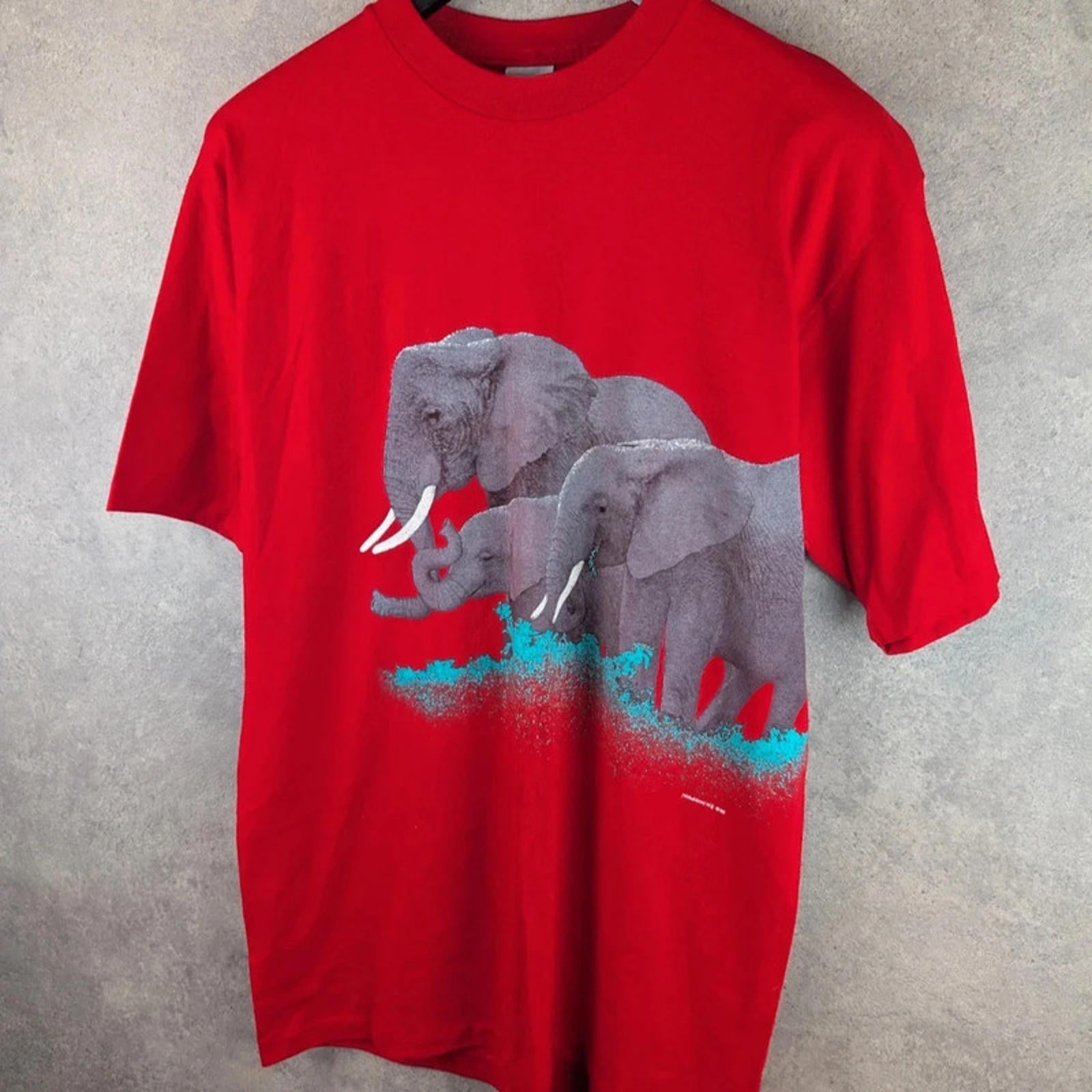 Vintage 1988 Harlequin Single Stitch Elephant Print T-Shirt Large