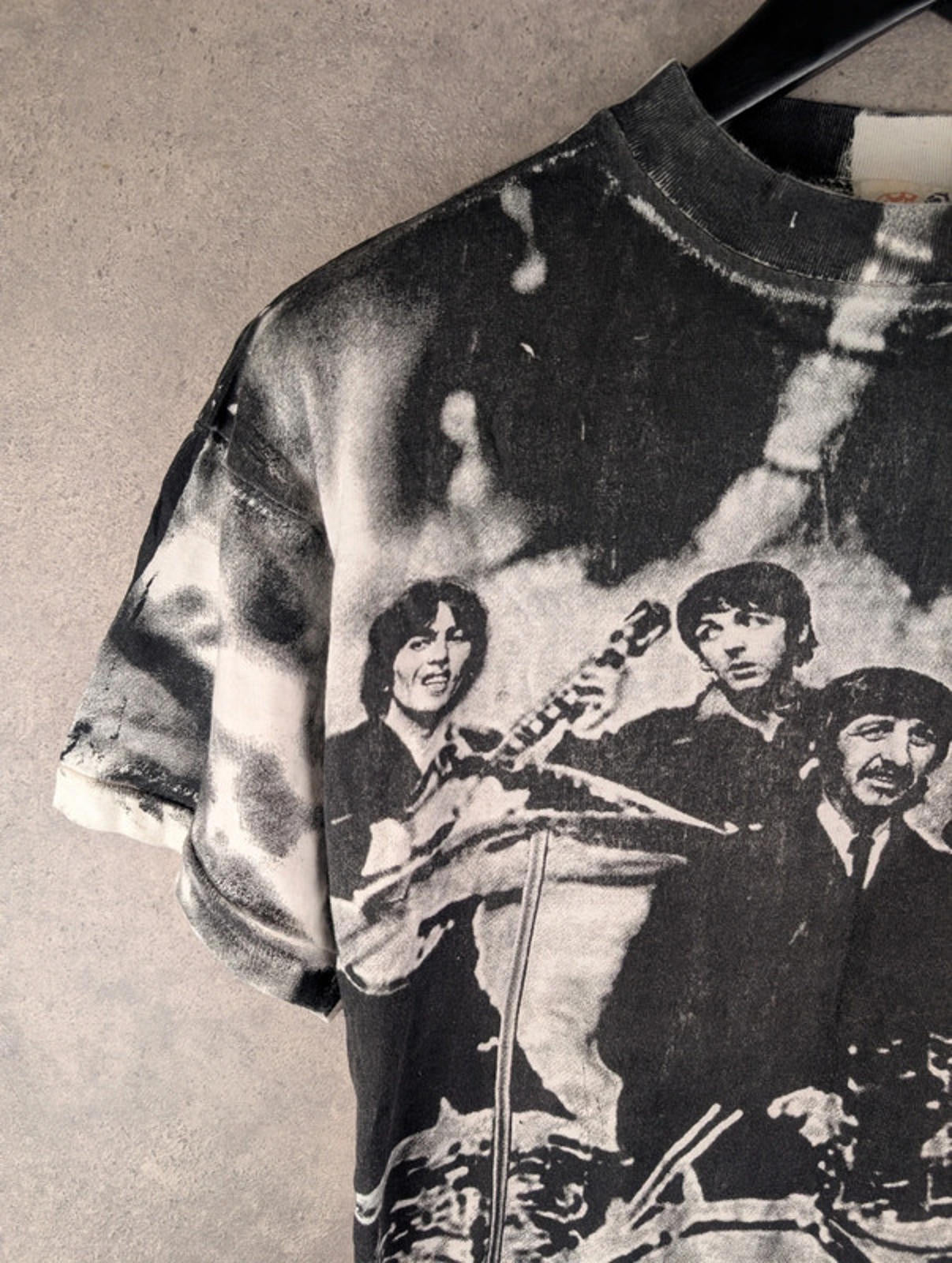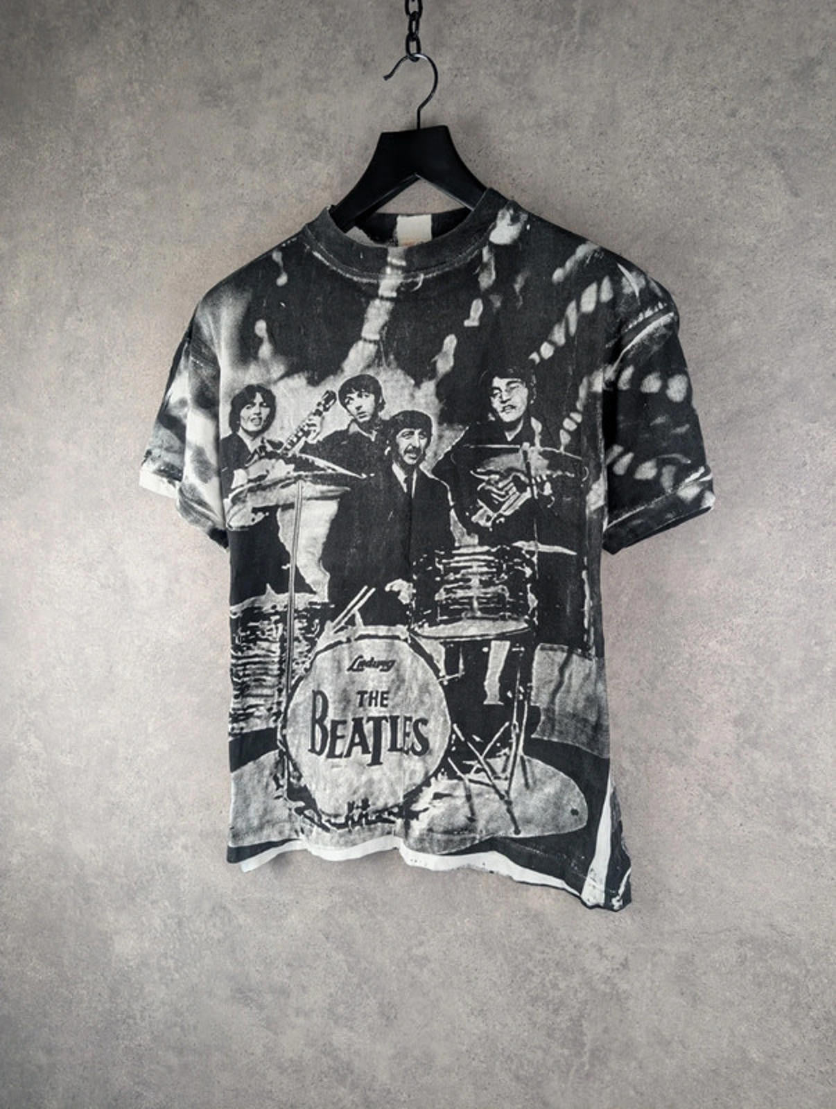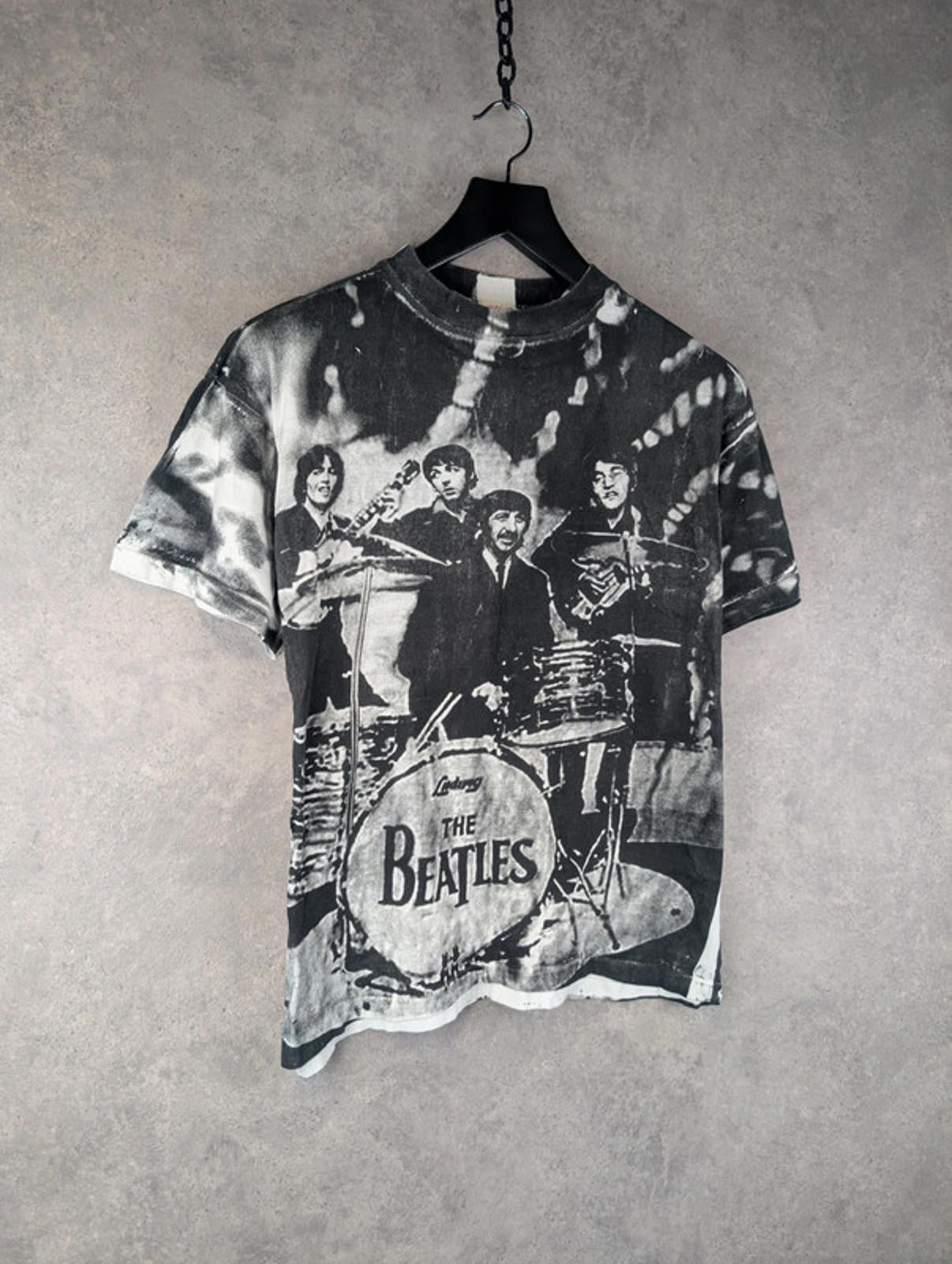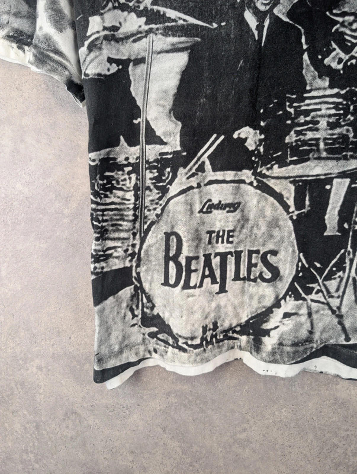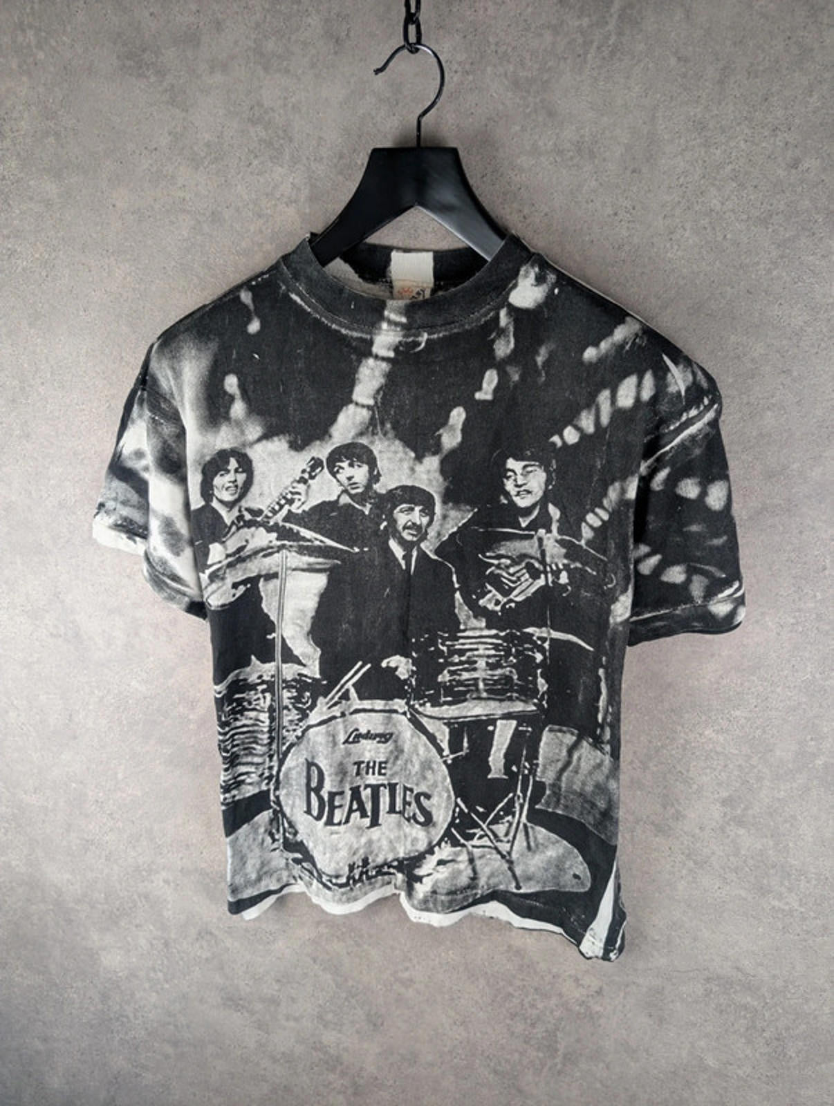 Increase quantity for Vintage Fantasy Beatles T-Shirt Mens Large L All Over Print Black/White