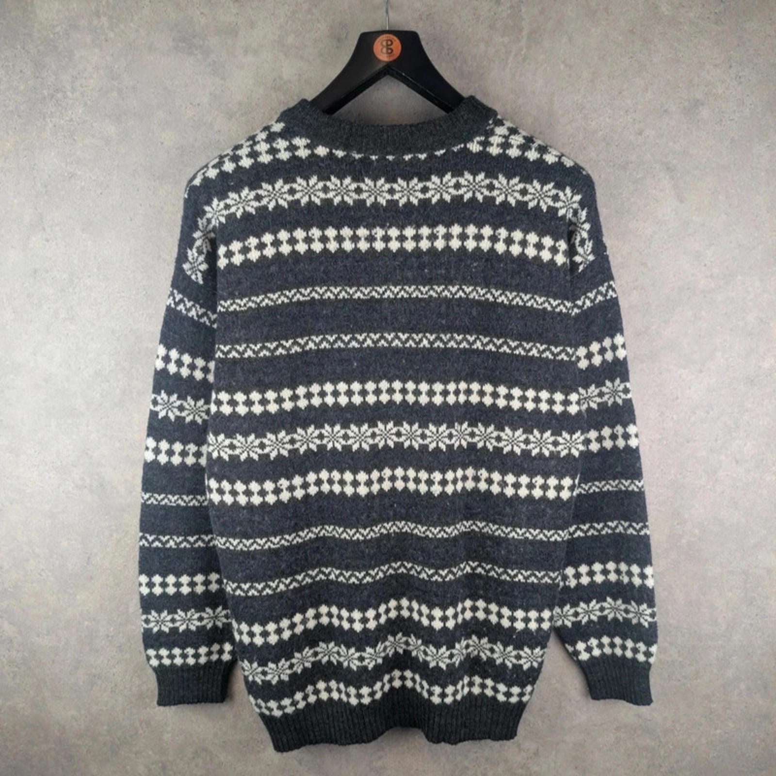 Decrease quantity for Vintage Jumper Mens L Large Grey Knitted Retro Pullover