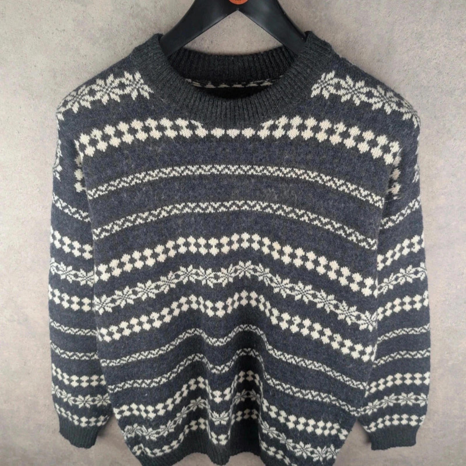 Vintage Jumper Mens L Large Grey Knitted Retro Pullover
