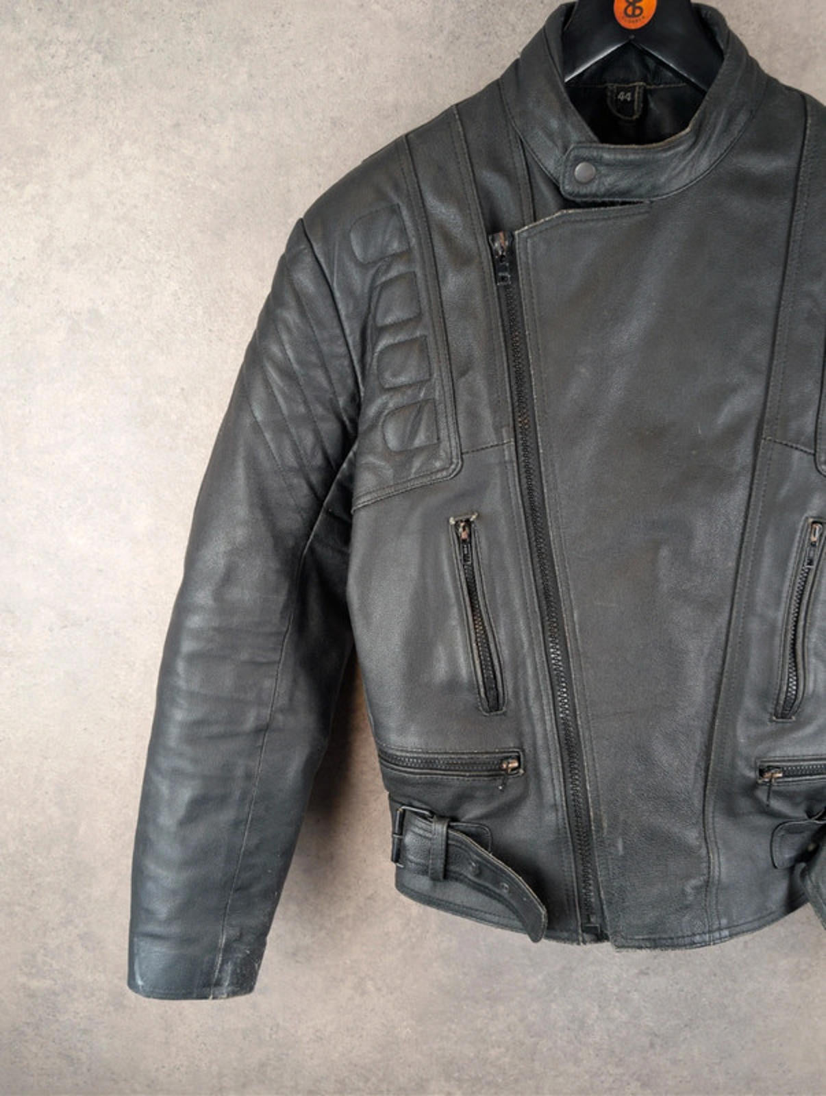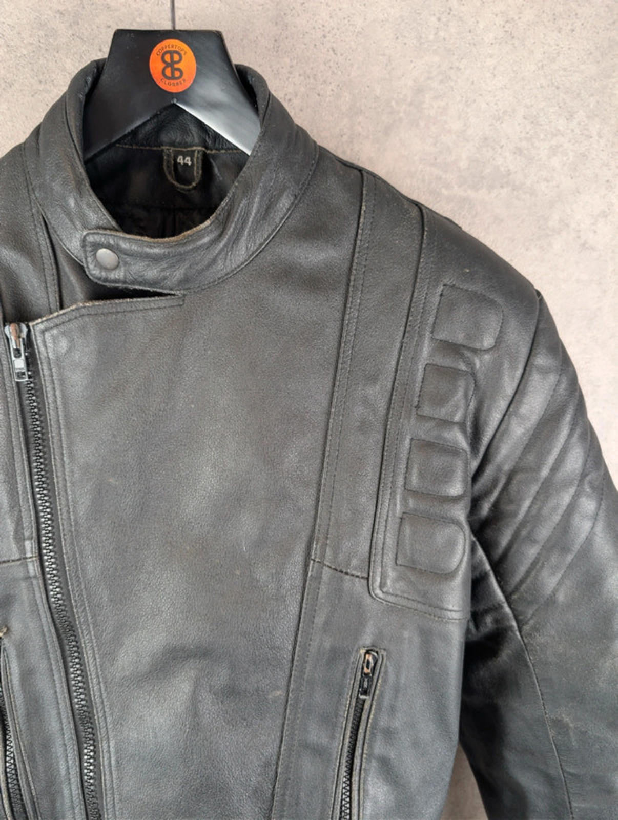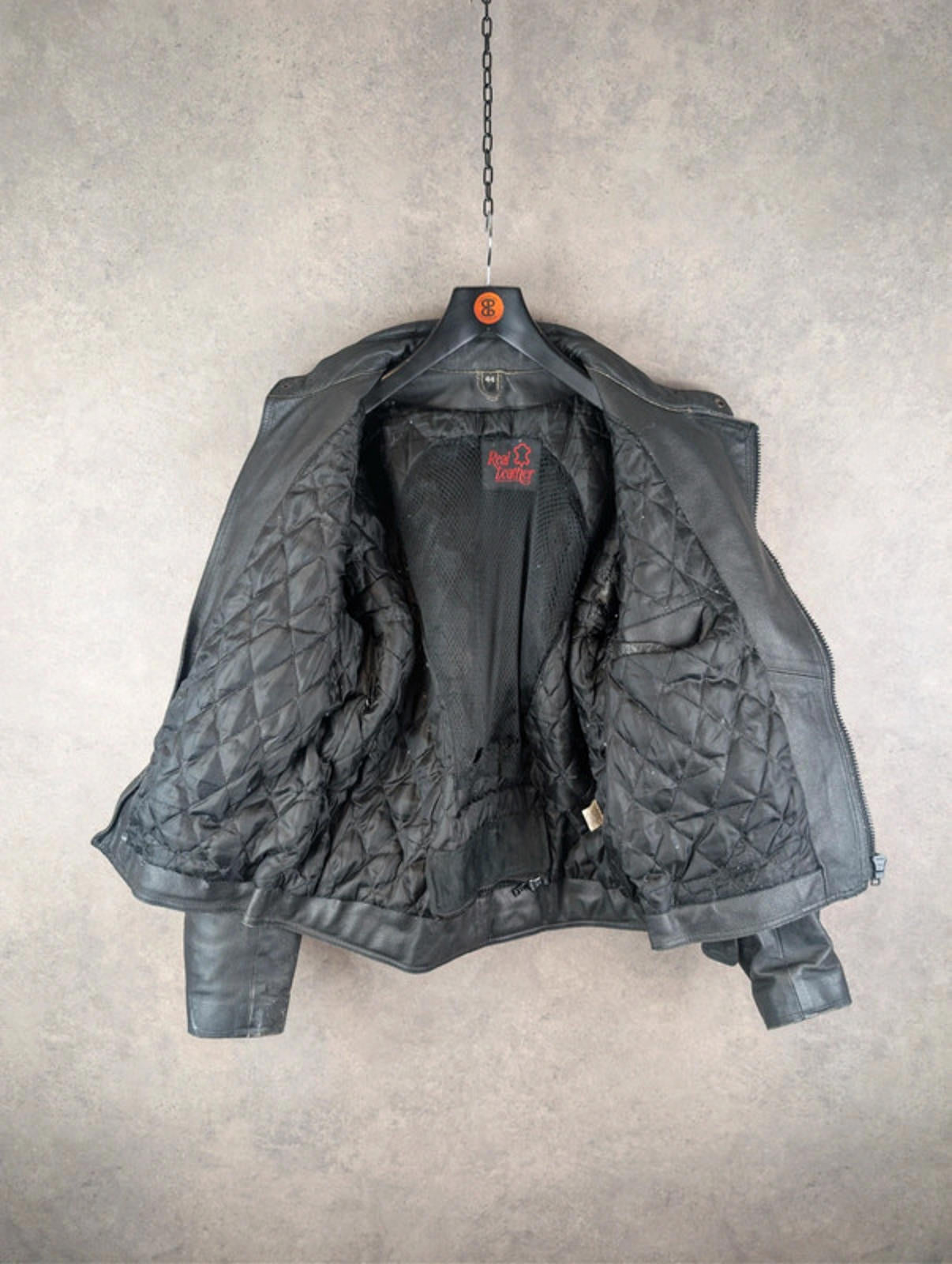 Increase quantity for Vintage Motorcycle Jacket Mens L Large Black Leather