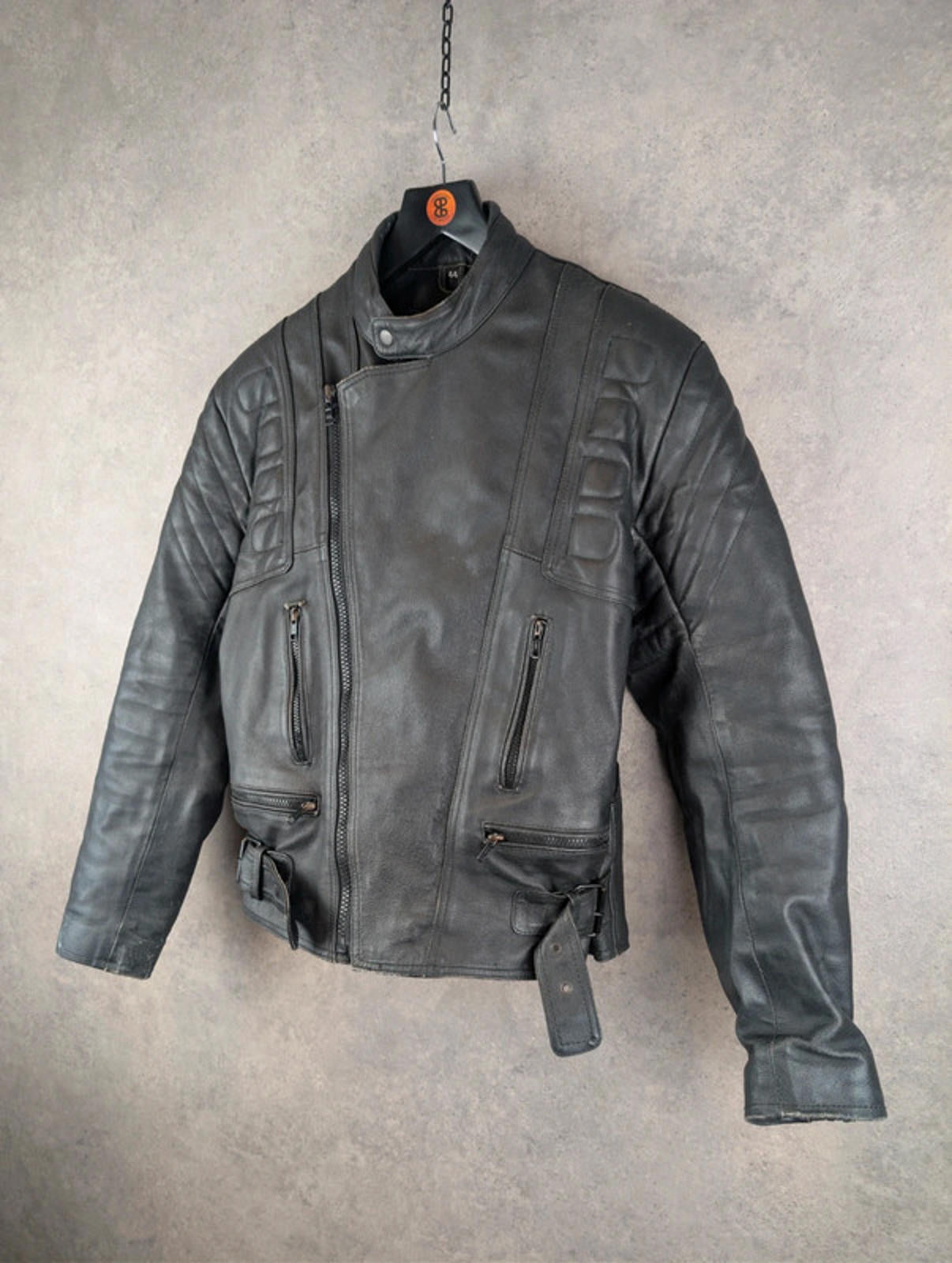 Vintage Motorcycle Jacket Mens L Large Black Leather