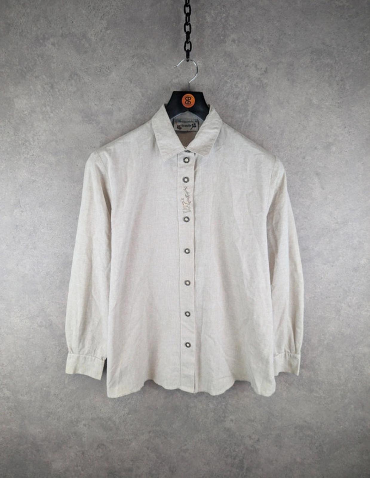 Increase quantity for Vintage Shirt Womens XXL 2XL Beige Embroidered Button Up