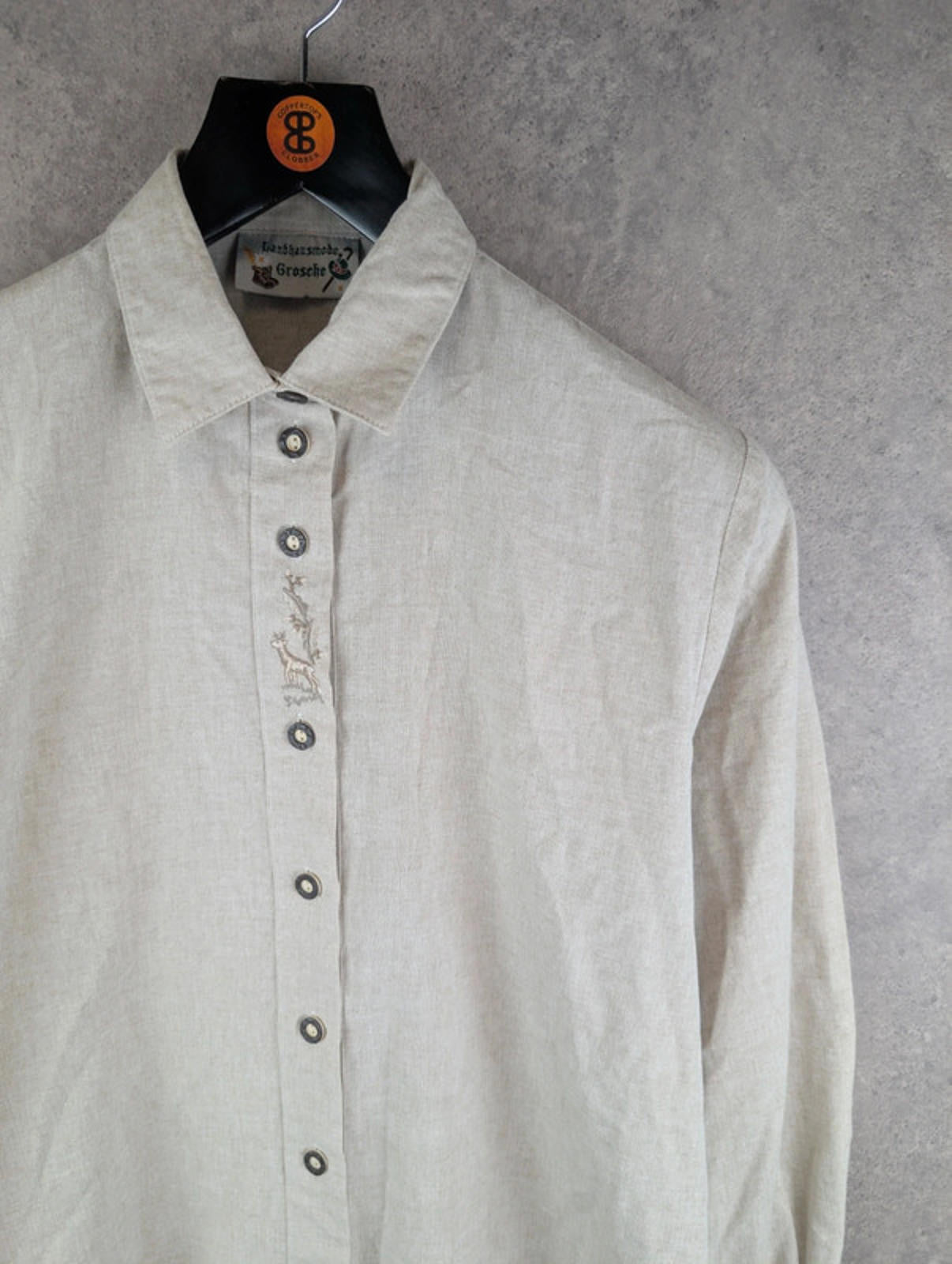 Vintage Shirt Womens XXL 2XL Beige Embroidered Button Up