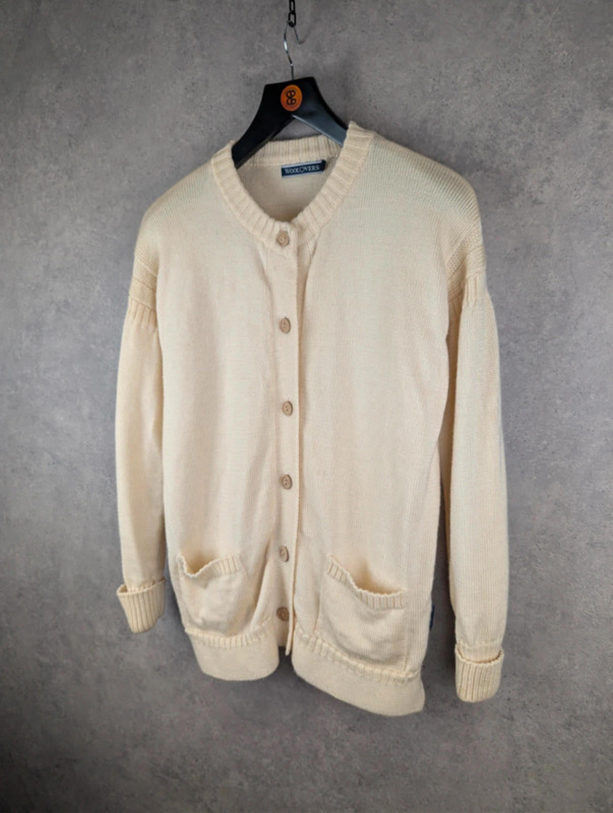 Increase quantity for WoolOvers Jumper Womens Large L Yellow Vintage Wool Knitted Cardigan