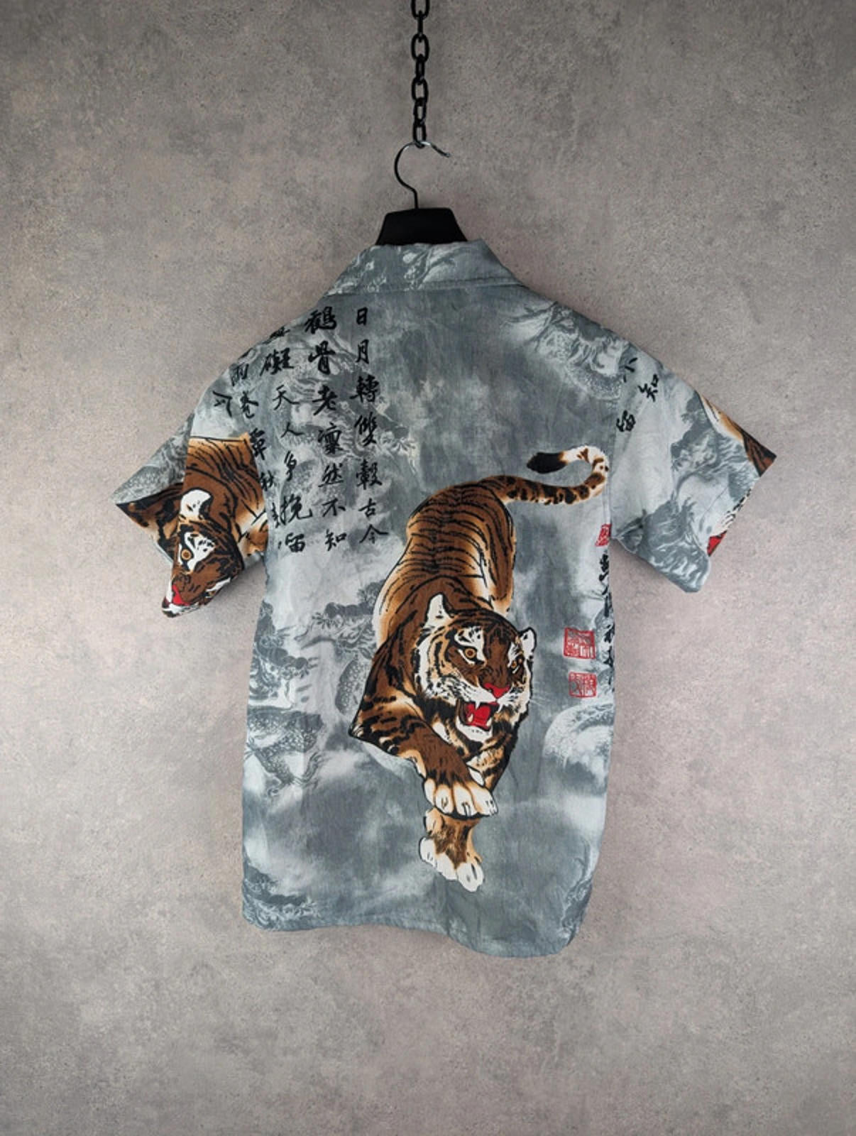 Decrease quantity for Y2K Tiger Graphic Print Shirt Mens S Small Grey